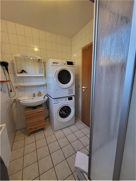 Außerdem ist das Haus ausgestattet mit Küche, Essbereich, Wohnzimmer, Gäste-WC, Badezimmer mit Waschmaschine sowie Trockner.